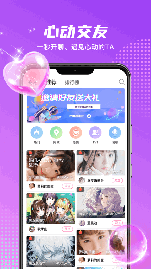 即时匹配,一秒开启心动对话;