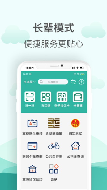 公共服务应用:作为金华市统一身份认证载体,全面打通图书馆、体育场馆、文化中心、全民健身站点及水电气暖等公用事业缴费系统,实现一卡通用、一码通办”;