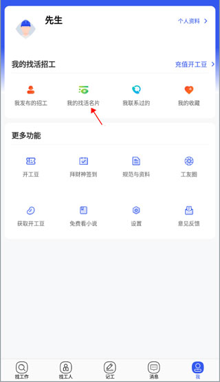 工地找工作app怎么设置个人名片?