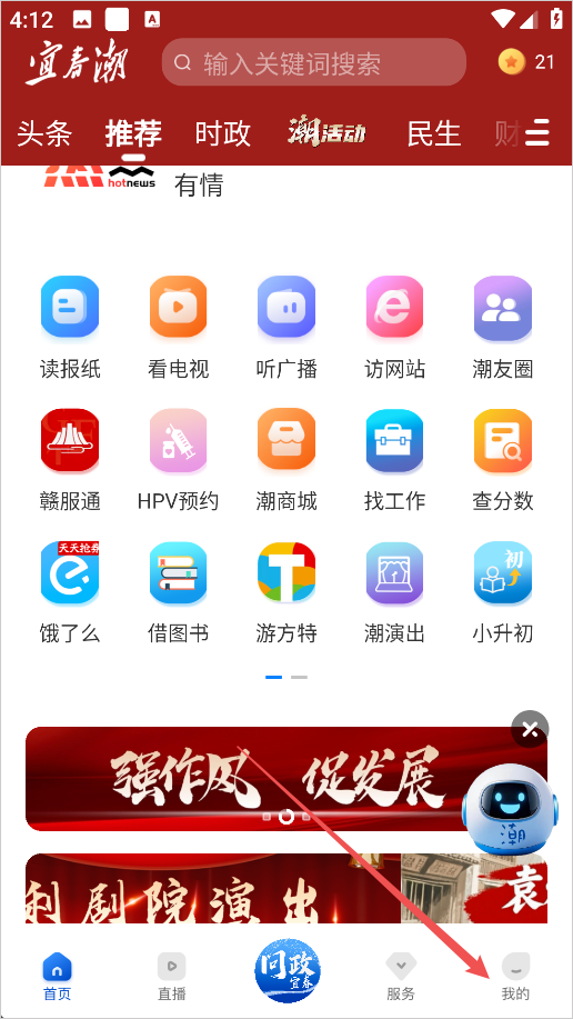 1、进入宜春潮App后点击右下角的我的”