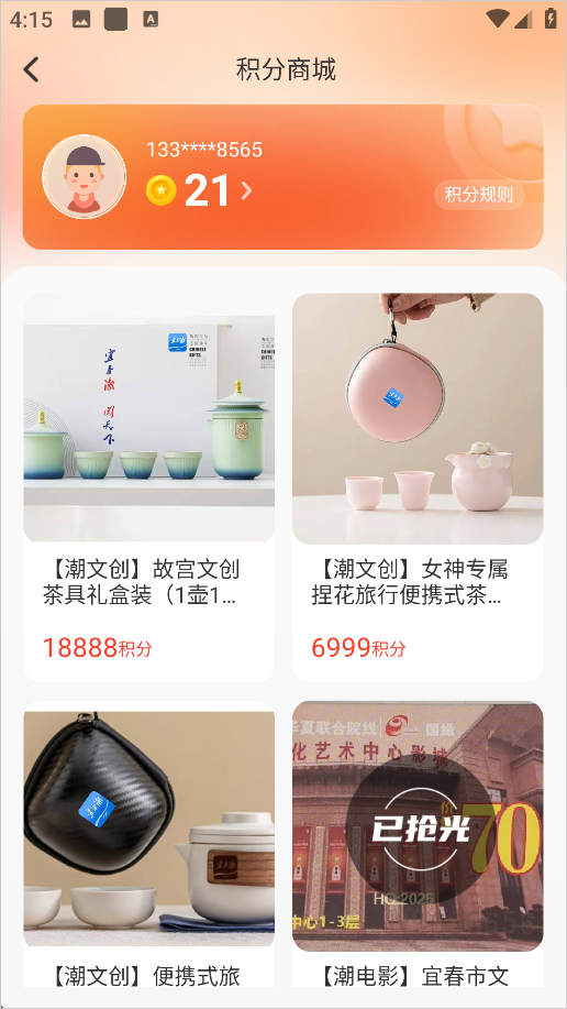4、所获积分可在积分商城兑换丰富多样的实物或虚拟礼品
