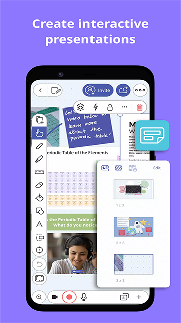 使用无限的画布创建幻灯片,使用激光指针,绘制任何颜色,添加形状、文本、视频、图像和音频文件。