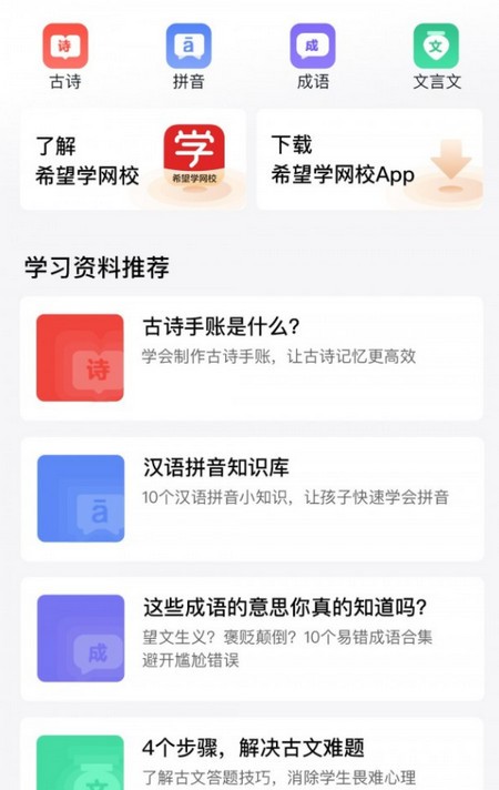 1.希望学为孩子提供小学、初中全学科课外教学。