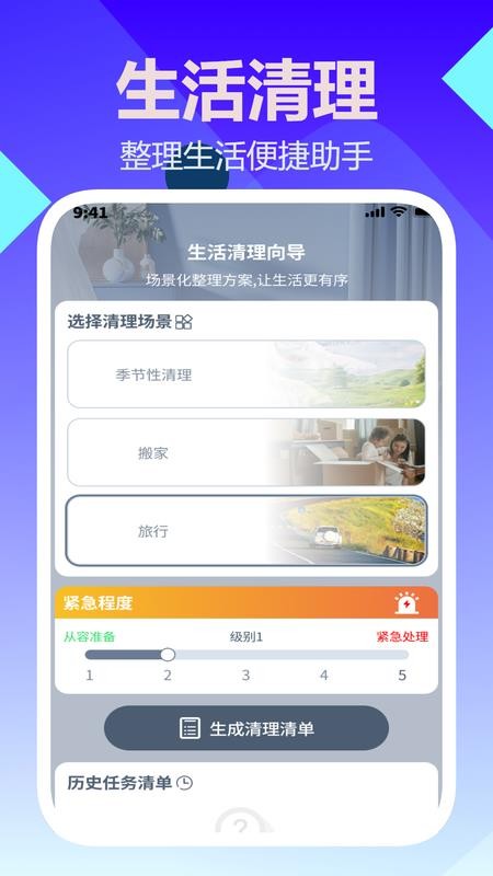 软件提供了生活整理的向导,帮助用户轻松整理生活中的各种事项,生成清单。