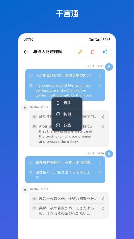翻译的内容可以直接在应用中复制,同时可以在线分享,方便自己的好友查看;