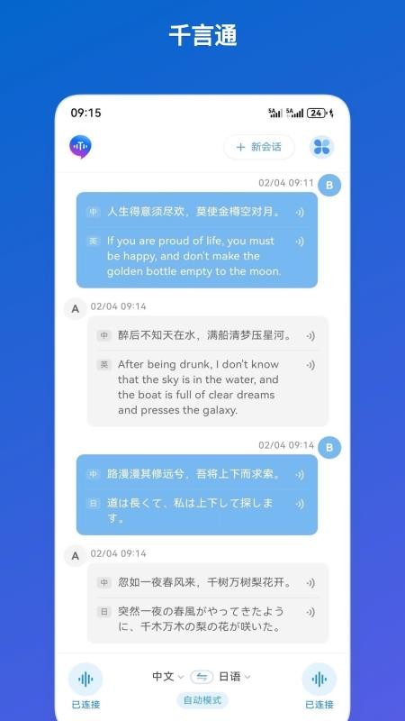千言通APP免费版是一款非常强大且精准的双向语言翻译软件,旨在为用户提供更加便利且流畅的沟通服务,在应用中就能实现智能麦克风设备绑定,帮助你日常聊天时可以实时翻译,知道对方说的化,保障沟通无忧。超级多的语言翻译支持,无论时中文、英文、法语、日语还是俄语等,均可在应用中翻译,并且可以直接下载使用,满足你在任何场景下的翻译需求,还支持离线使用,翻译更高效。翻译的内容可以清晰呈现在应用中,便于用户阅览,知道对话内容详情,同时可以直接在线复制和分享,方便日常使用和好友阅览详情;快来下载试试吧!