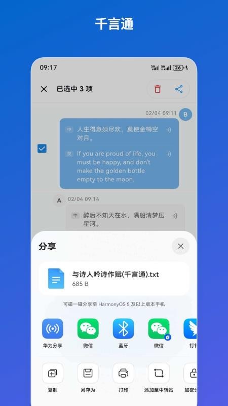 5、翻译的内容可以直接复制分享,同时可以将其保存和打印;