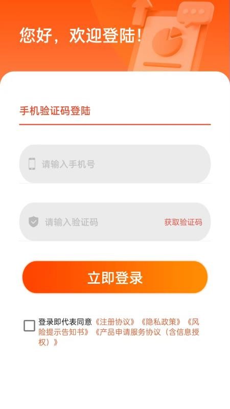 1、在线下载并打开易借钱APP,即可使用手机号获取验证码登录;