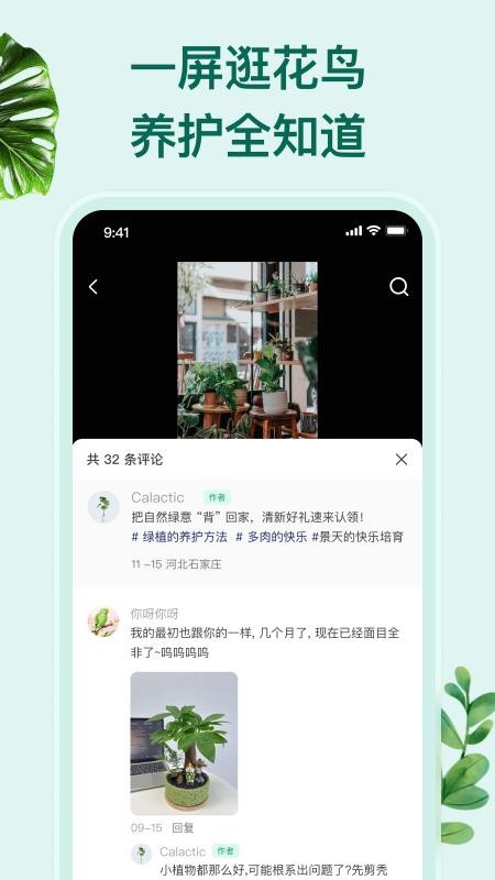 以分类的方式为你呈现花、鸟、鱼、虫和宠物等养护动态,便于用户选择性查看;