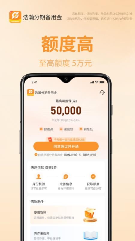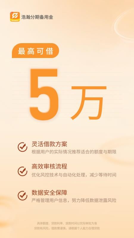 浩瀚分期备用金是一款专注个人信用备用金与消费分期服务的正规金融工具,为用户提供安全、便捷、透明的资金周转方案。平台依托智能风控技术,全程线上申请,操作简单,无需线下面签,支持灵活分期与随借随还,满足日常消费、应急周转、生活支出等多元资金需求。我们坚持息费透明、合规经营,严格保护用户信息安全,全程加密处理,让每一笔借款都放心、安心。浩瀚分期备用金,做你身边靠谱的资金助手,轻松应对生活每一笔急需,年化利率最高不超过24%。温馨提示:贷款有风险,借款需谨慎,请根据个人能力合理借贷。