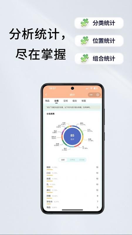 5、也可以全面统计分析自己的物品数量,全方位的统计查看。