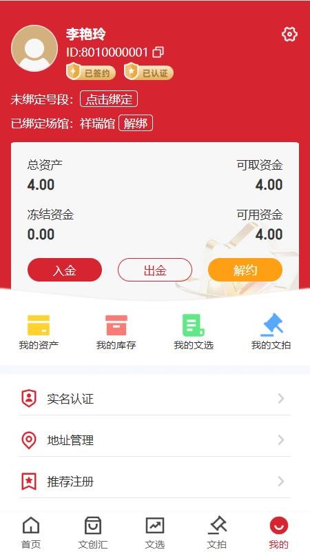 支持用户自由绑定场馆,绑定场馆可以更好的参与文化产权交易;