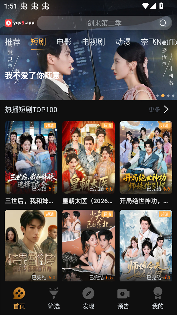 一起刷视频app官方版是一款非常受用户们喜欢的手机刷剧软件,这款软件不仅全网的短剧、电影、电视剧、动漫、综艺等影视资源,让我们可以按照自己的喜好来选择。而且这款APP上的所有影视资源都是高清免费的,从而让你可以直接打开观看。当然,我们也可以通过这款软件来一边观看影视资源,一边发送弹幕进行互动,从而让你可以和其他用户沟通。