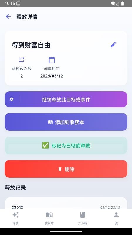 1、在线下载并打开释放法练习APP,就能编辑添加自己要释放的目标;