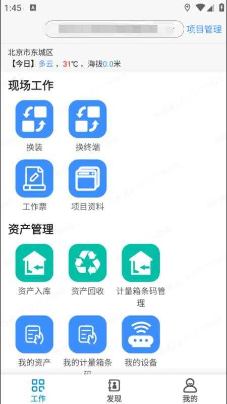 2、进入应用的工作页面,即可看到诸多现场工作和资产管理功能;