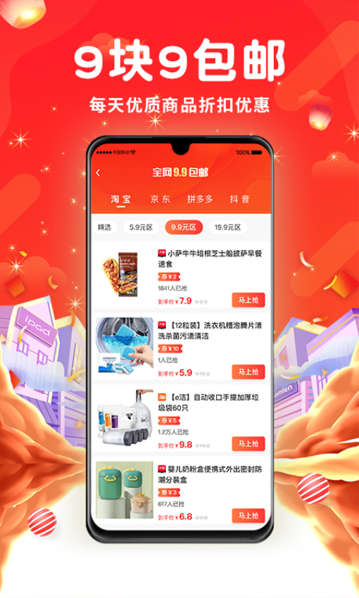可自由在线查看全国9块9包邮产品,完成抢购即刻为你包邮发货,购物省钱;
