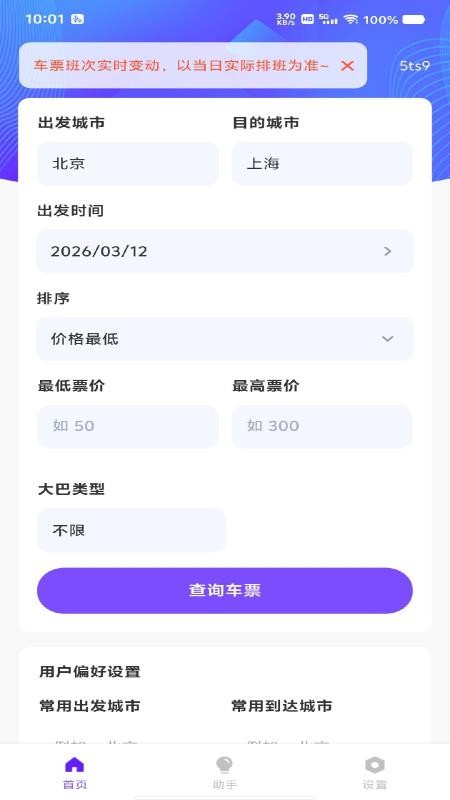 2、用户可以对需要的汽车票进行查询,一键搜索汽车票。