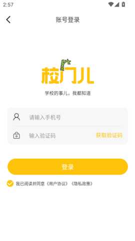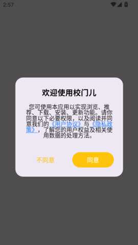 3、使用校门儿非常简单,用户只需下载并打开应用,进入加载页面后,查看并同意用户协议和隐私。