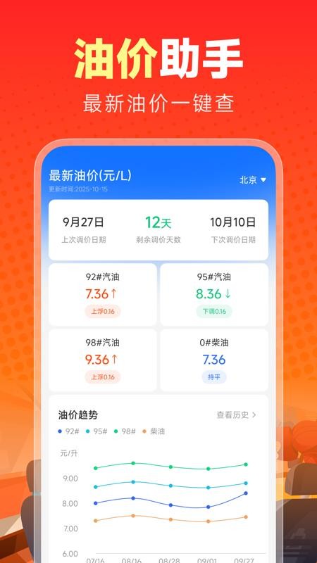 内置了贴心的油价助手,方便用户实时查询油价,更好的进行油价查询。
